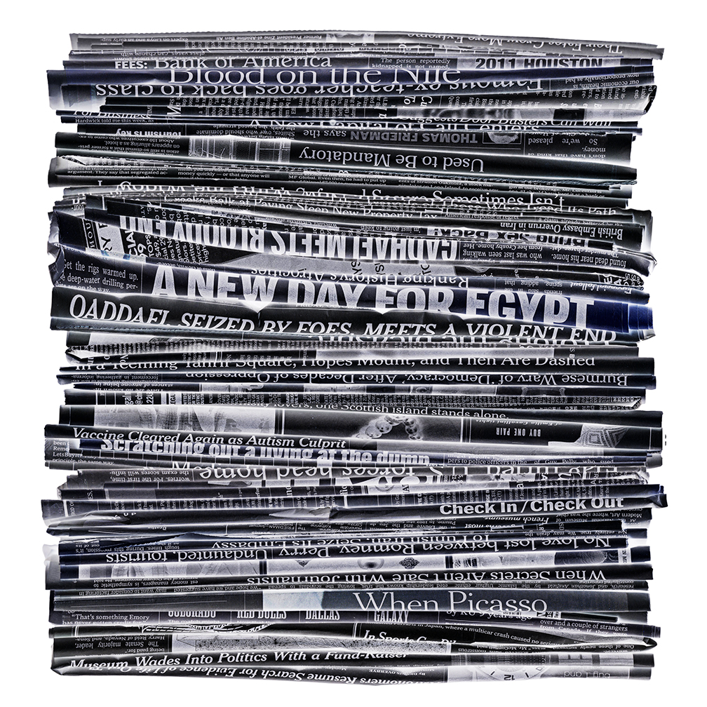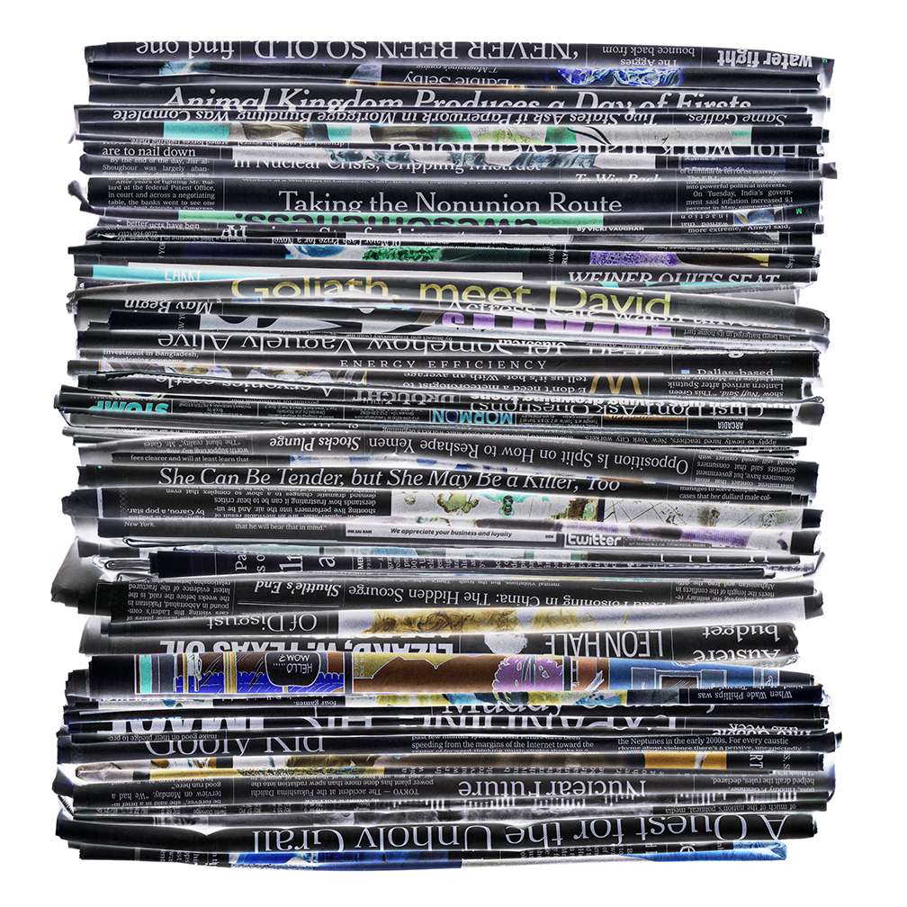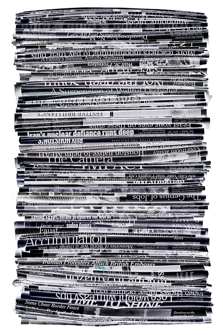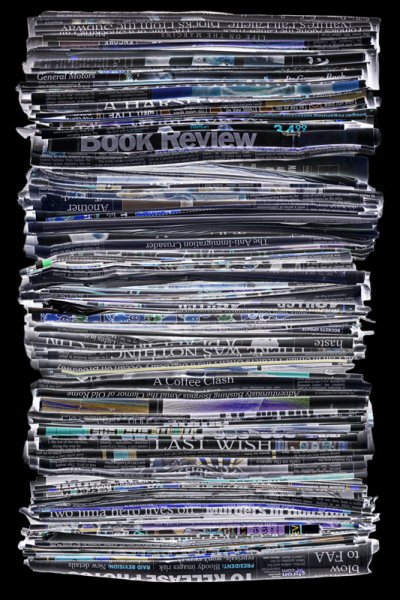 This project could easily be about waste and recycling. It is not. Rather, it is about the masses of information – more specifically, the overload of information in our lives. It wasn’t long ago that we only had to contend with television, magazines, newspapers and mail. Now, on top of those media, we have mobile Internet, electronic books, and the World Wide Web — which contains amounts of data so limitless we could never absorb even a fraction of it all.